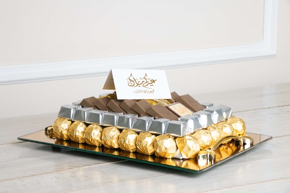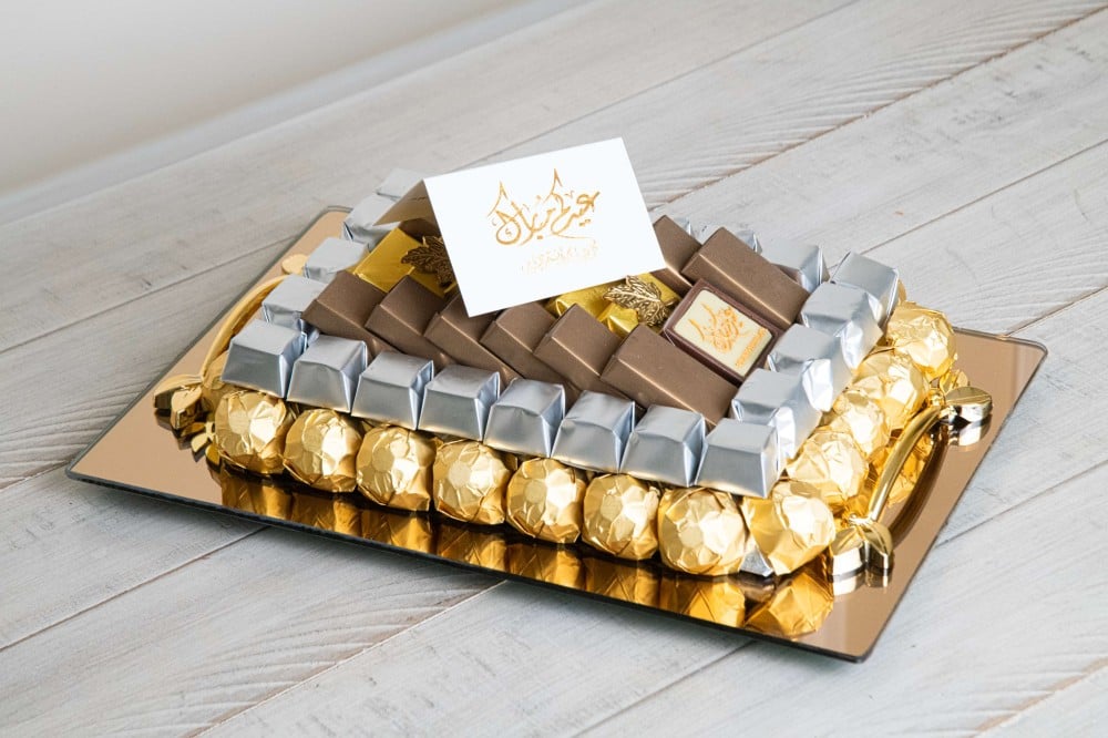 صحن مستطيل ذهبي شوكولاتة مغلفة مشكلة