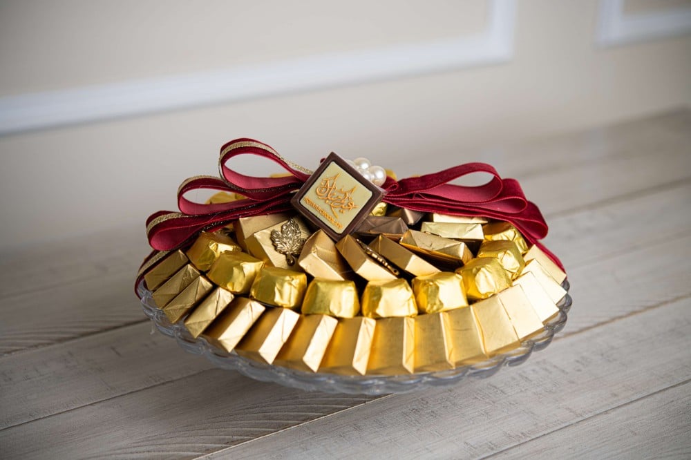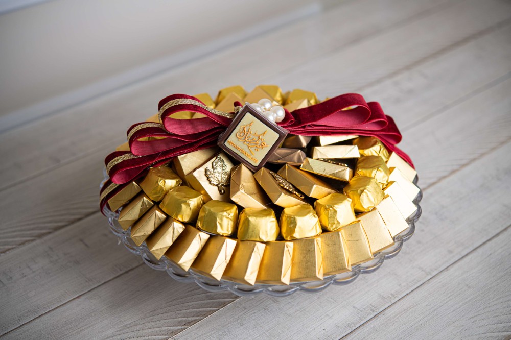 صحن دائري كريستال شوكولاتة مغلفة ذهبي صغير