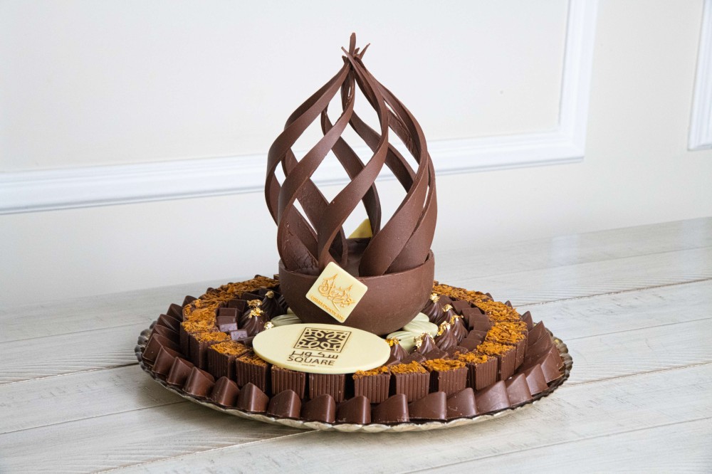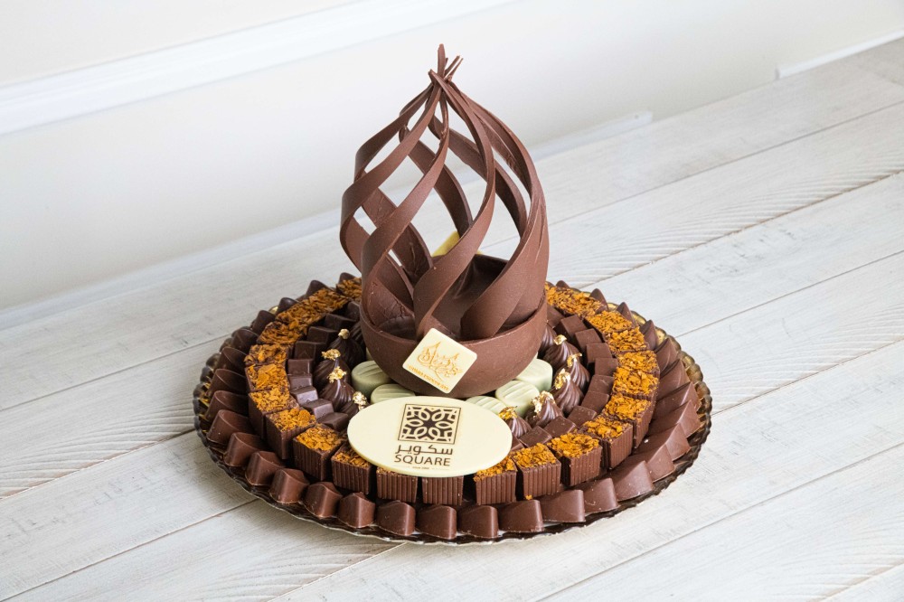 صحن شوكولاتة مكشوفة وايت وورق ذهب ذهبي