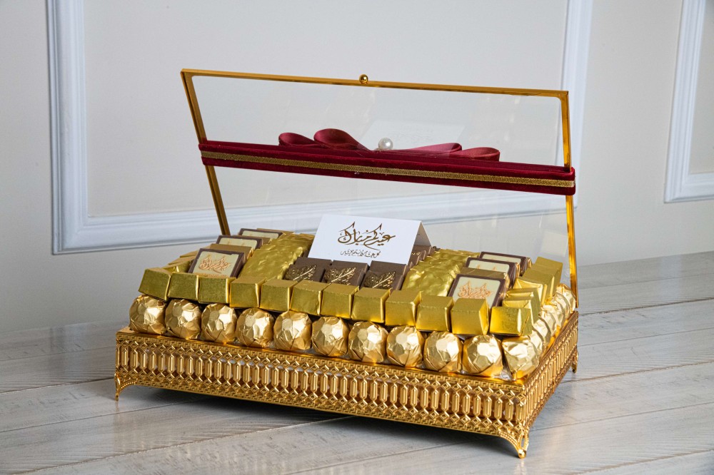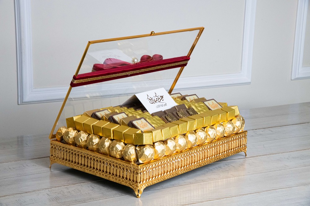 صندوق ذهبي شوكولاتة مغلفة ذهبي فقط