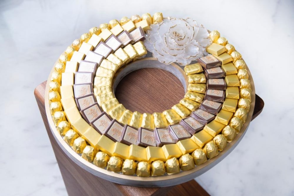 صينية فاخرة مليئة بأجود أنواع الشوكولاته المتنوعة والفاخرة من سكوير ، 1900 جرام.